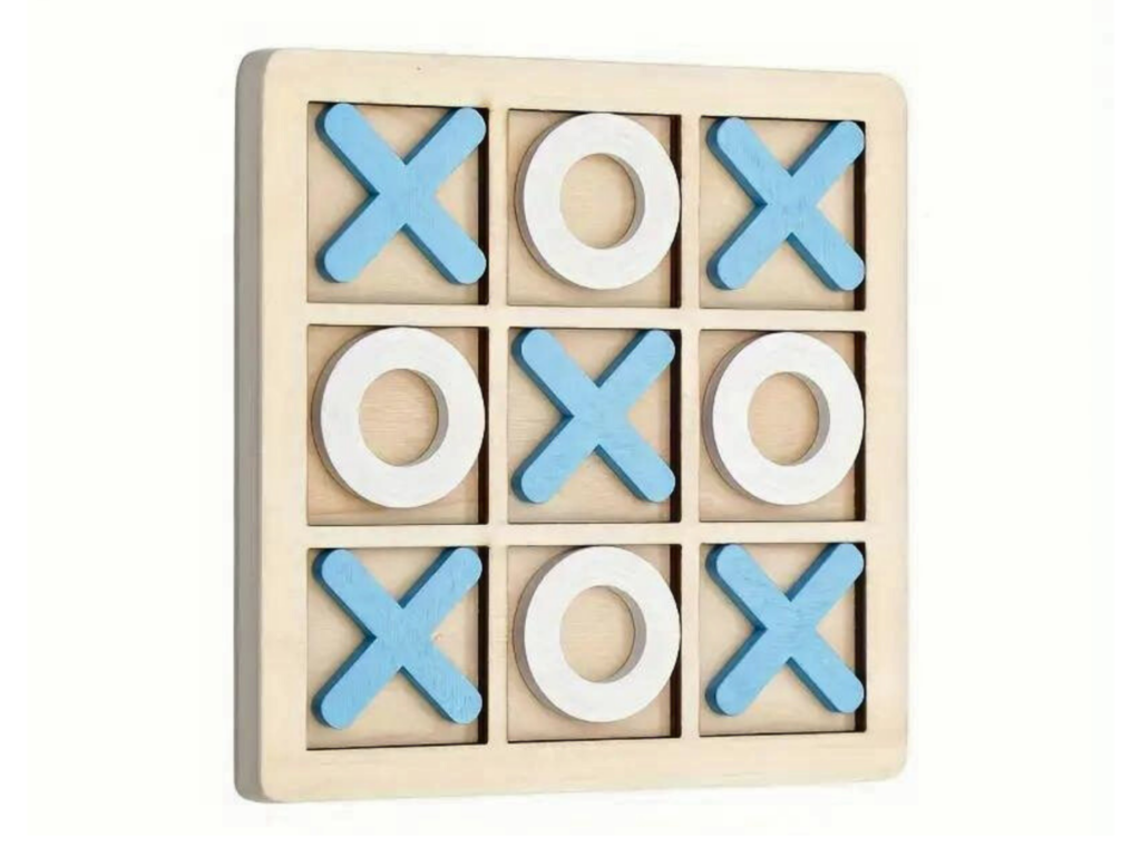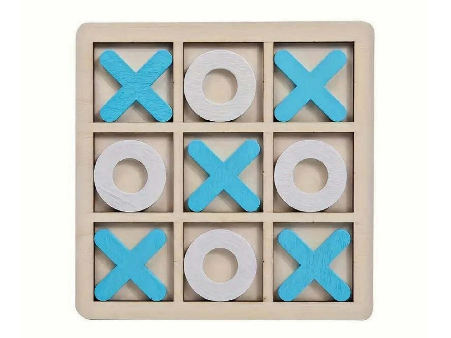 Blaues Holz-Noughts & Crosses, Tic Tac Toe, 3 in einer Reihe Familienspielset
