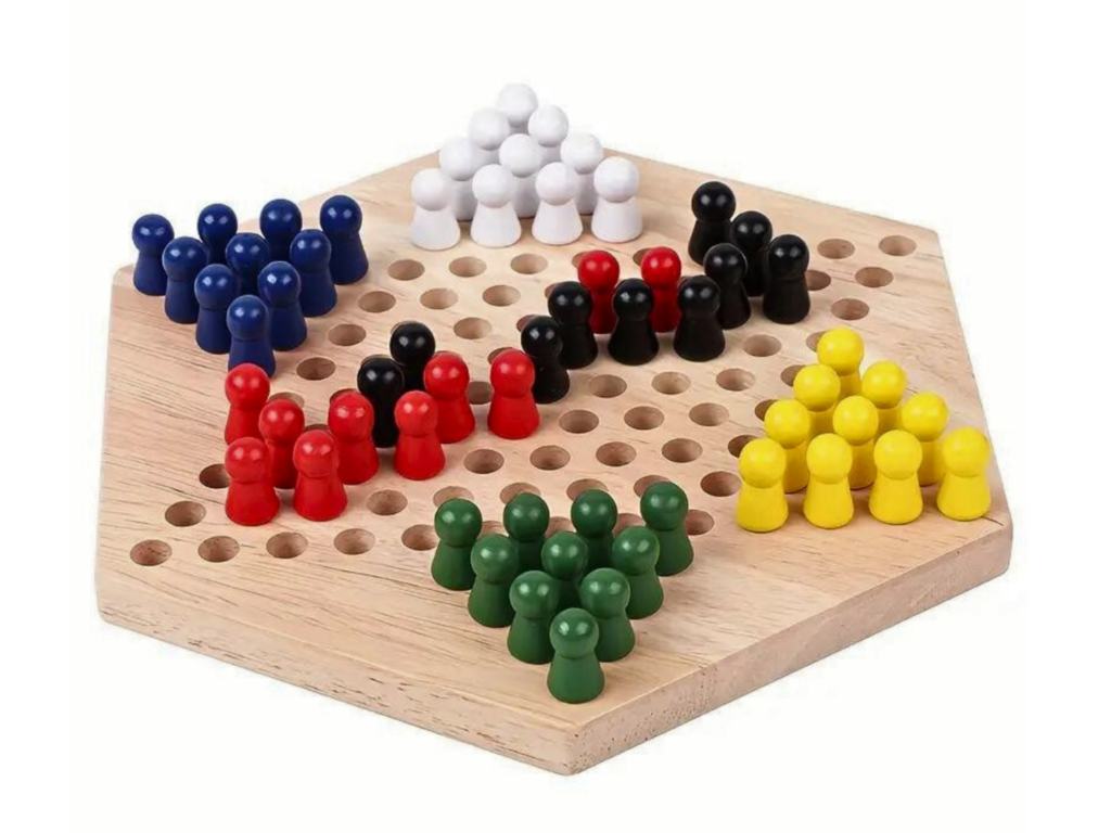 Chinesisches Damespiel mit Holzbrett für die Familie, 6 Spieler, 9 Zoll