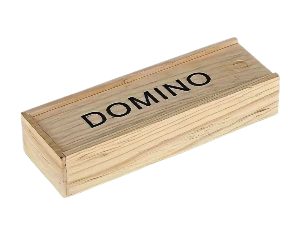 Doppel-6-Domino in Holzschiebebox