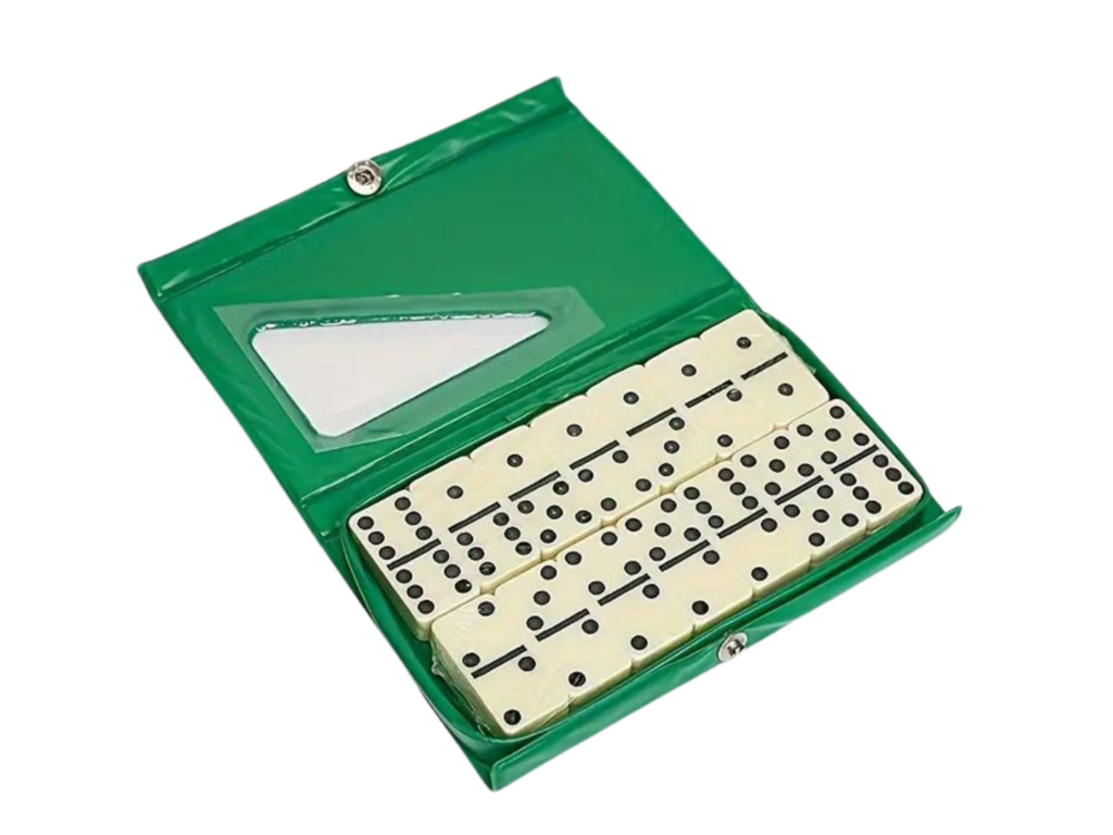 Dieses elegante Doppel-6-Domino-Set wird in einem stilvollen grünen Kunstleder-Etui geliefert, das sowohl Stil als auch Schutz für deine Spielsteine bietet. Das Kunstleder-Finish verleiht einen raffinierten Look und hält die Dominosteine sicher und organisiert. Mit 28 strapazierfähigen Steinen mit klaren, gut lesbaren Punkten ist dieses Set ideal für traditionelle Spiele und perfekt für Familienfeiern, Partys oder gemütliche Spieleabende. Das kompakte Etui macht es einfach zu verstauen und zu transportieren, sodass du das Spiel überallhin mitnehmen kannst. Ein klassisches Muss für jede Spielesammlung!