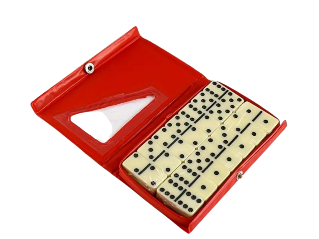 Dieses elegante Doppel-6-Domino-Set wird in einem stilvollen roten Kunstleder-Etui geliefert, das sowohl Stil als auch Schutz für deine Spielsteine bietet. Das Kunstleder-Finish verleiht einen raffinierten Look und hält die Dominosteine sicher und organisiert. Mit 28 strapazierfähigen Steinen mit klaren, gut lesbaren Punkten ist dieses Set ideal für traditionelle Spiele und perfekt für Familienfeiern, Partys oder gemütliche Spieleabende. Das kompakte Etui macht es einfach zu verstauen und zu transportieren, sodass du das Spiel überallhin mitnehmen kannst. Ein klassisches Muss für jede Spielesammlung!