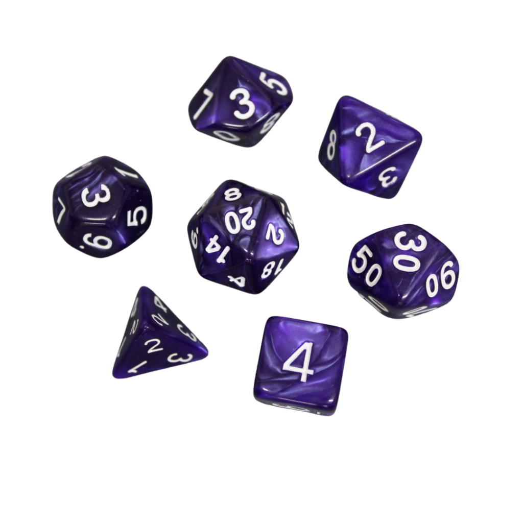 Royal Purple Marbled DND Dice Set, 7 Piece Dice Set, Roll Playing Game Dice