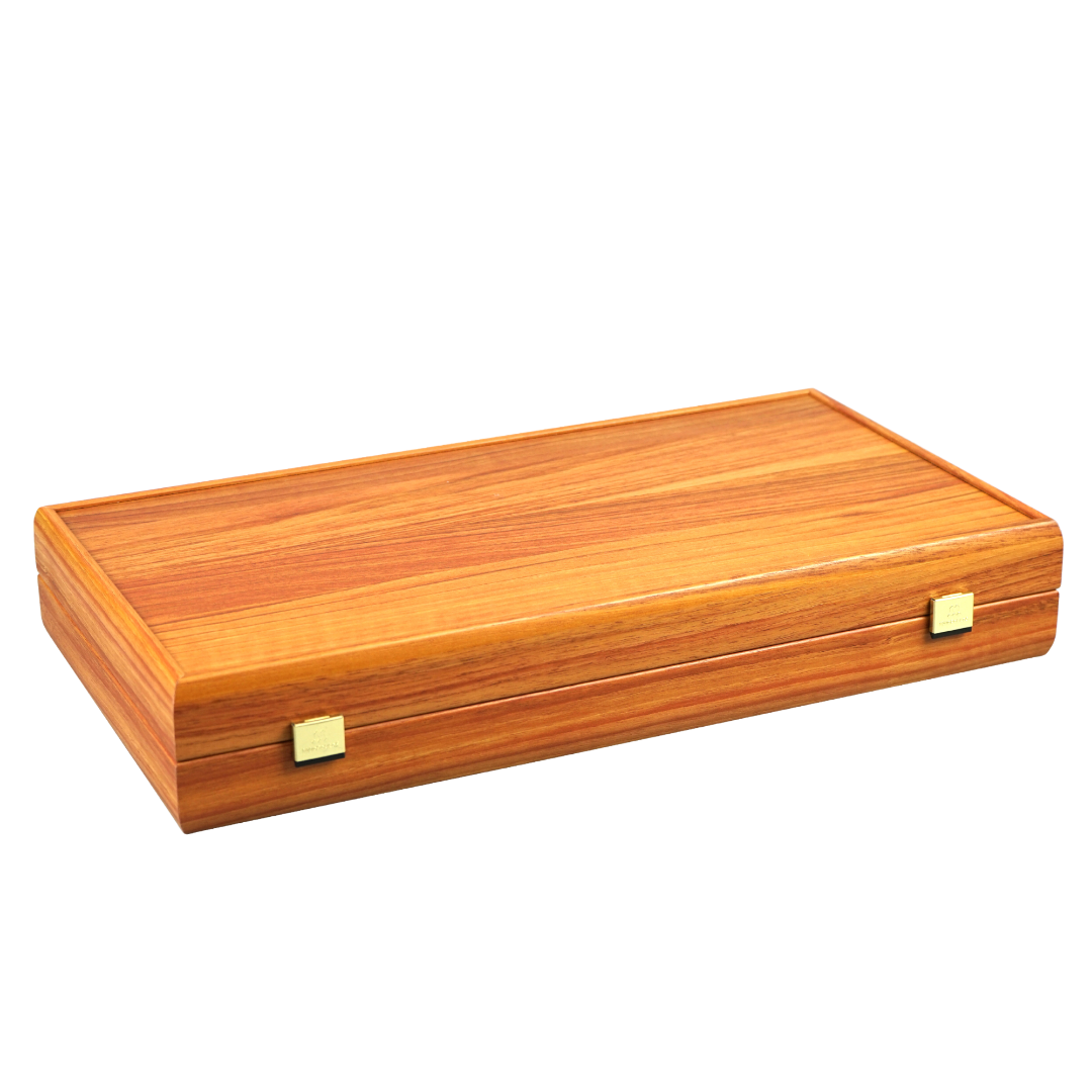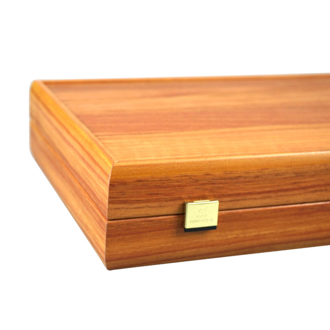 Wir präsentieren das 50 cm große Mahagoni Manopoulos Backgammon-Set, eine hervorragende Kreation mit luxuriösem Finish. Handgefertigt mit aufwendigen Holzimprint-Designs im wunderschönen Griechenland, wird dieses Backgammon-Set von Manopoulos aus verschiedenen Hölzern sorgfältig gefertigt. Das hochwertige Brett wird von Backgammon-Steinen mit Marmoreffekt, Würfeln und Würfelbechern begleitet, die ein wunderbares Spielerlebnis bieten. Das Brett, hergestellt von erfahrenen Kunsthandwerkern in Griechenland, verfügt über Metallverschlüsse an beiden Seiten, um es sicher zu schließen. Jedes Set enthält auch einen Manopoulos-Beutel mit Kordelzug, der die Sicherheit Ihrer Würfel und Backgammon-Steine gewährleistet. Dieses exquisite Brett bietet ein hervorragendes Preis-Leistungs-Verhältnis und ist jetzt bei Chessgammon erhältlich.