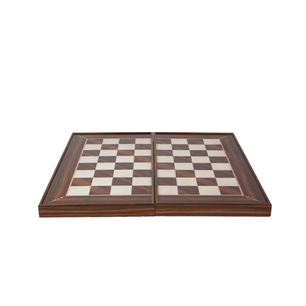 Embark on a journey of luxury with the distinguished Manopoulos company from Greece and their exceptional Brown Walnut Backgammon Set, a testament to exquisite wooden craftsmanship. Immerse yourself in the tactile delight of a smooth matte surface that enhances the comfort and ease of your backgammon game. This opulent set is meticulously equipped with all the necessary backgammon pieces, complemented by a complimentary set of shakers for an added touch of indulgence. The board’s refinement extends to a meticulously crafted metal clasp, ensuring a secure closure when folding away this fine ensemble. Representing a refreshing departure from the ordinary, this set introduces a dynamic twist to our classic range of backgammon sets. It’s essential to note that, while not crafted from solid wood, the set features an intricate overlay design, adding a layer of sophistication to its overall aesthetic allure.