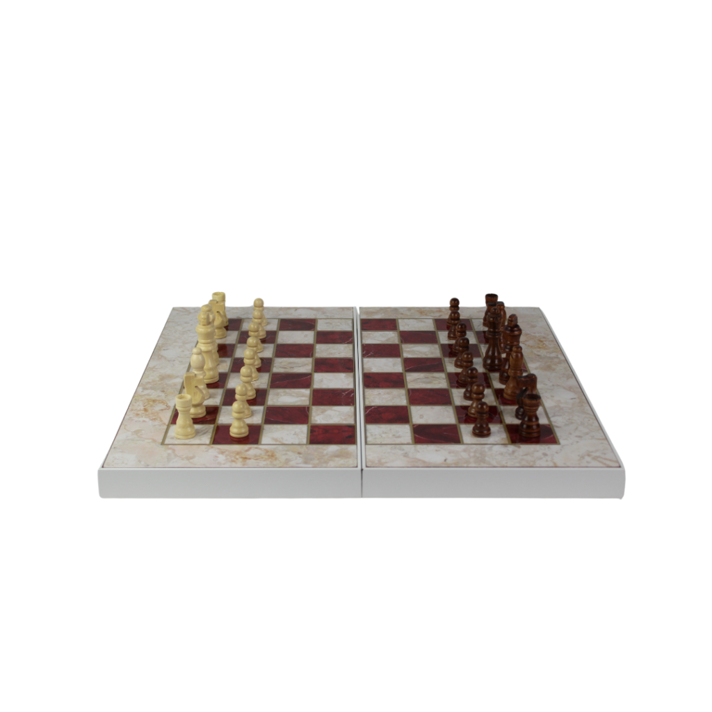 • Schach- & Backgammon-Brett im roten Marmor-Design