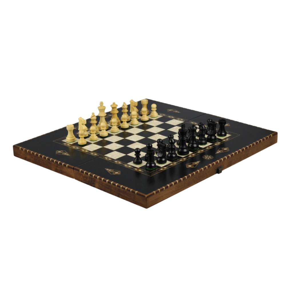Ebenholz Schach- & Backgammon-Set beinhaltet: