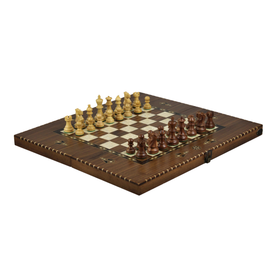 Helena Ländliches Walnuss Schach & Backgammon Set mit Sheesham Classic Staunton Schachfiguren 20 Zoll