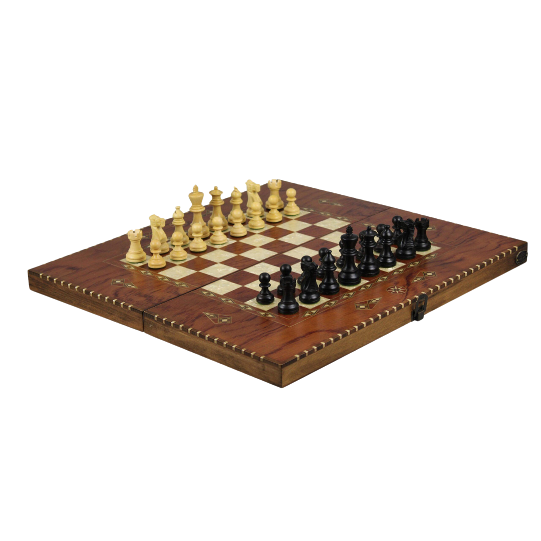 Helena Rural Rosenholz Schach- und Backgammon-Set mit ebonisierten klassischen Staunton Schachfiguren 20 Zoll