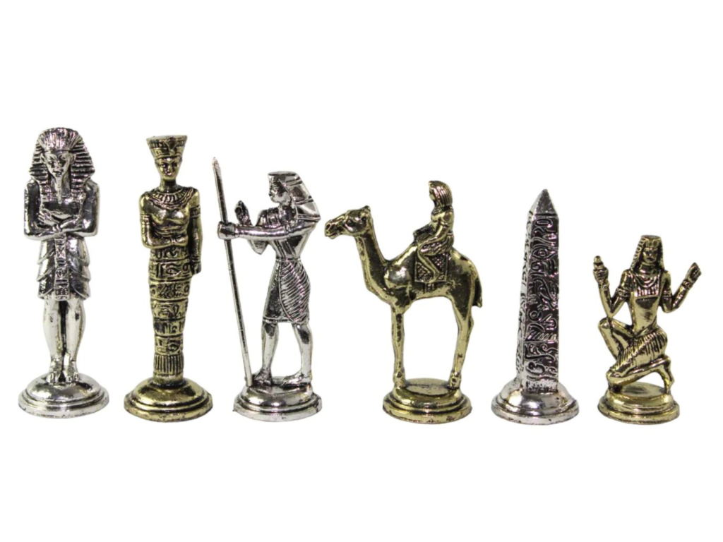 Tauchen Sie ein in die antike Welt Ägyptens mit unseren ägyptischen Metallschachfiguren. Gefertigt aus einer langlebigen Nickel- und Messinglegierung, sind diese 3,8 Zoll großen Schachfiguren darauf ausgelegt, die Pracht und Mystik der alten ägyptischen Zivilisation widerzuspiegeln. Jede Figur ist kunstvoll detailliert und zeigt Elemente der ägyptischen Kultur, wie Pharaonen, Götter und ikonische Symbole. Der auffällige Kontrast zwischen den Nickel- und Messingoberflächen verleiht Ihrem Schachbrett einen Hauch von Luxus und macht dieses Set zu einem visuellen Meisterwerk und einem funktionalen Spiel. Perfekt zur Dekoration oder zum Spielen, sind diese Figuren ideal für Schachliebhaber, die Geschichte und exquisite Handwerkskunst schätzen.
