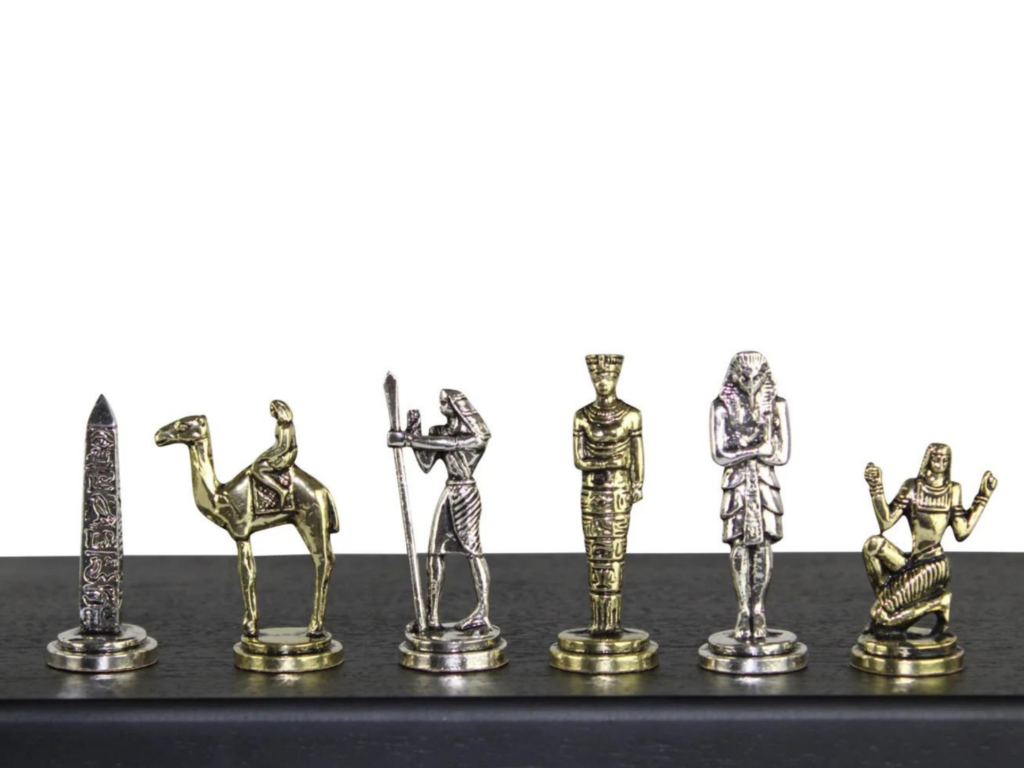 Agyptische Metall-Schachfiguren aus Nickel und Messing, 2,5 Zoll