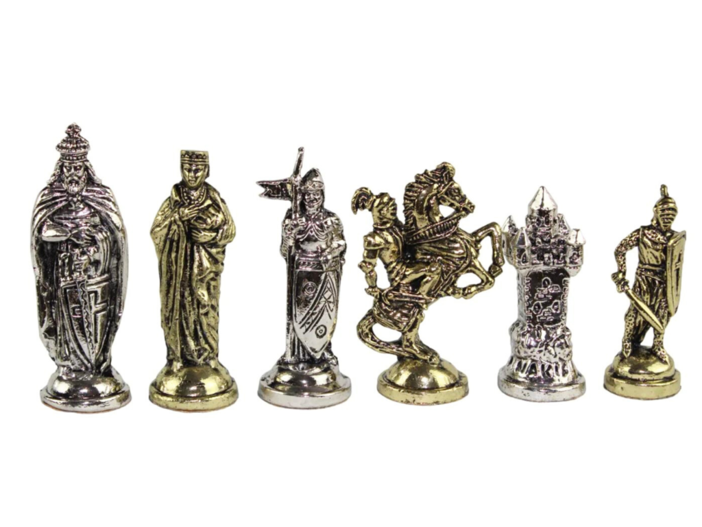 Kreuzritter Metall Schachfiguren Nickel & Messing 3,8 Zoll