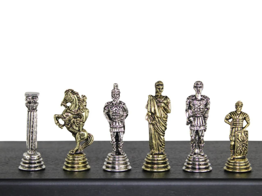 Romische Schachfiguren aus Metall Nickel & Messing 2.5 Zoll