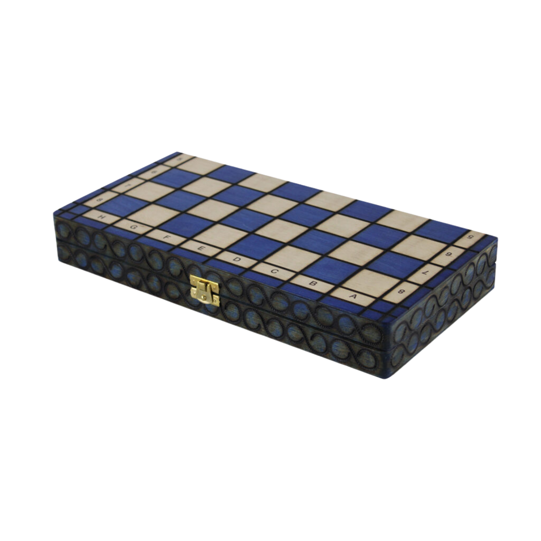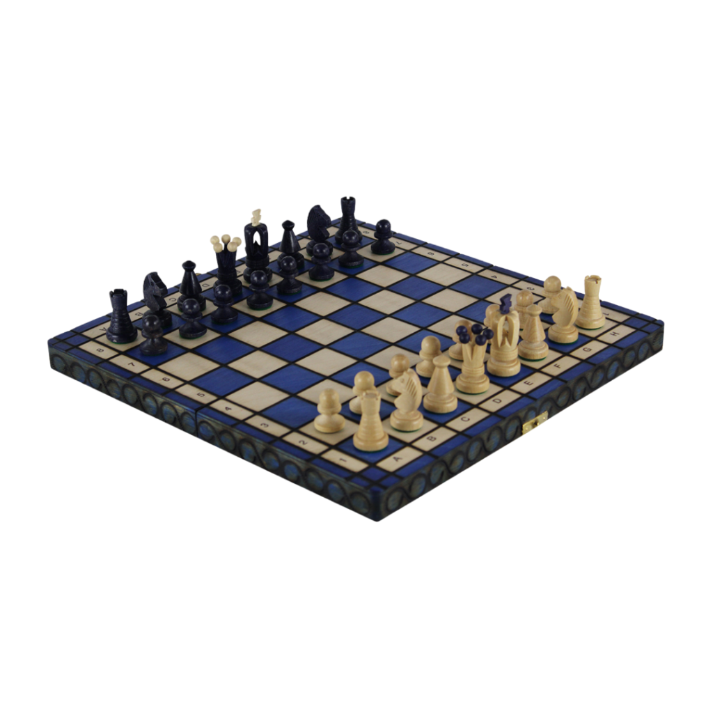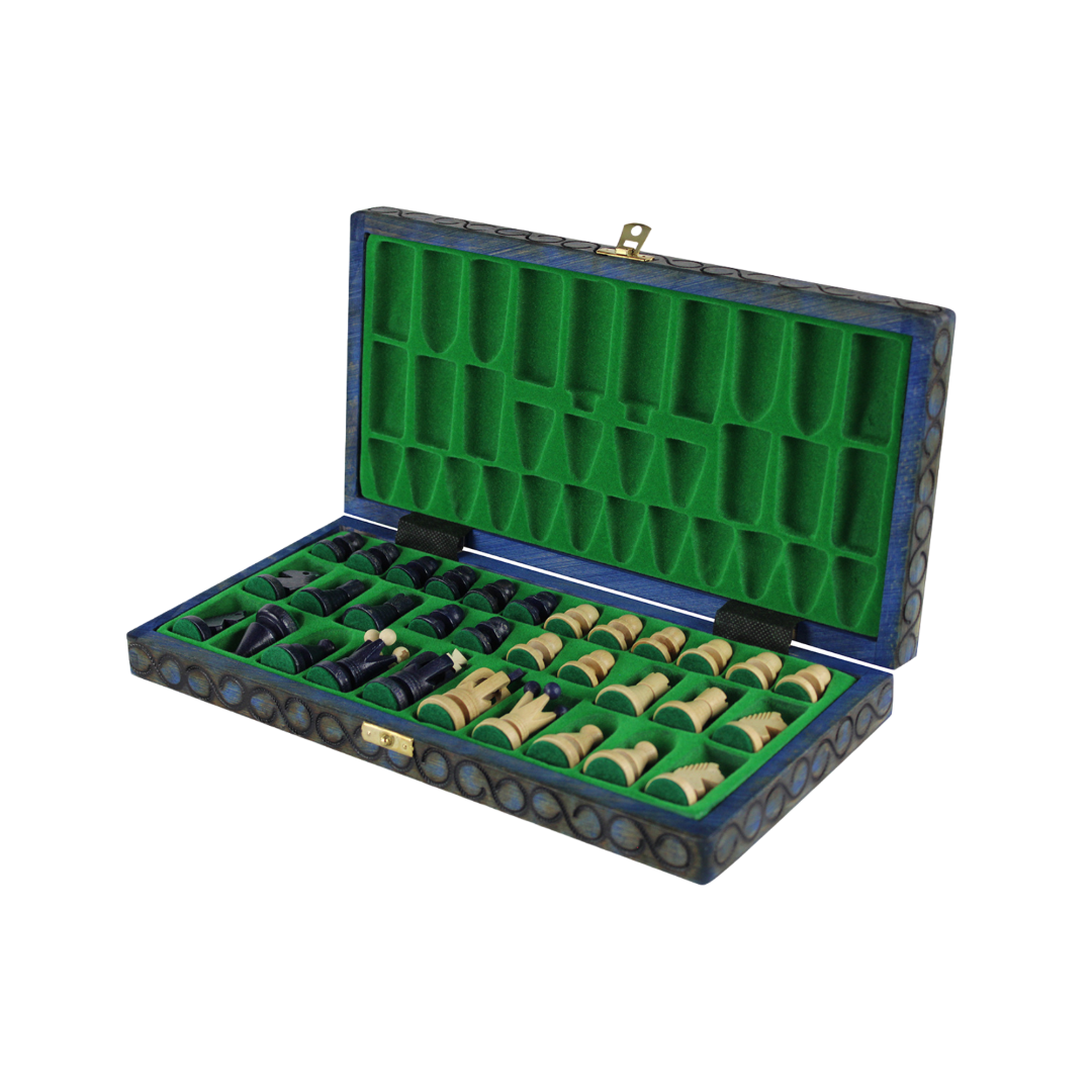 Art Deco Blue Foldable Chess Set 14 Zoll