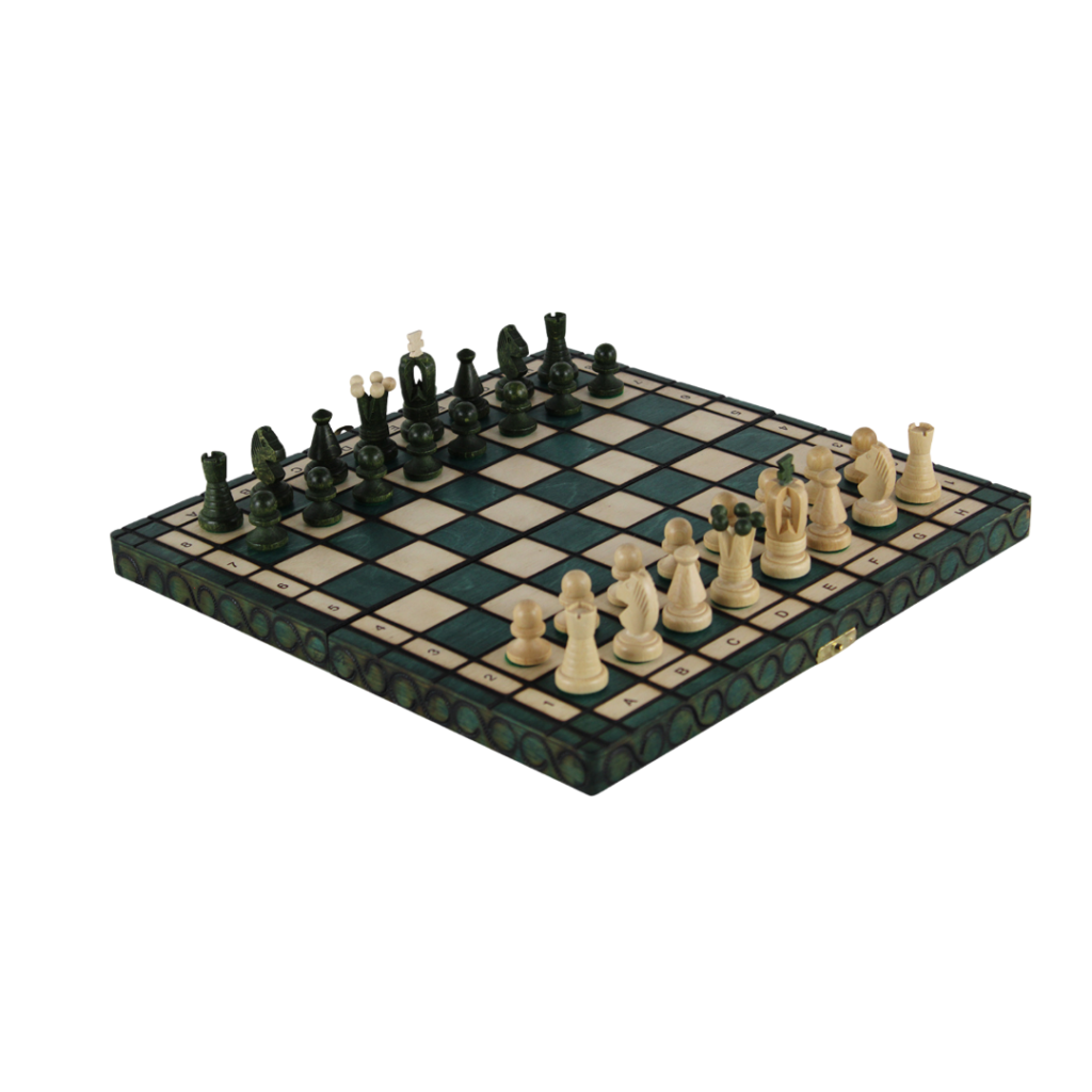 Art Deco Green Foldable Chess Set 14 Zoll