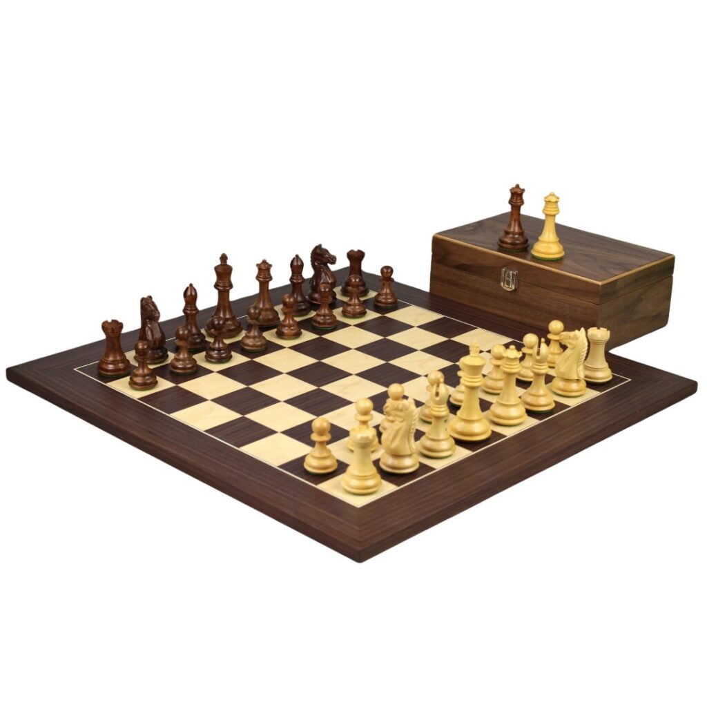 Macassar-Schachset 20 Zoll mit gewichteten Sheesham Staunton Fierce Knight (Queen’s Gambit) Schachfiguren 3,75 Zoll