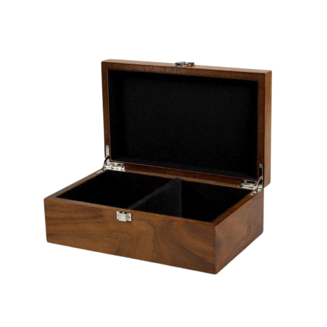 Schau dir das exquisite Wenge Schachset an, das ein imposantes 21-Zoll-Brett zeigt, das sorgfältig mit reichen Wenge- und hellen Ahorn-Einlegesquares gefertigt wurde und eine atemberaubende Kulisse für deine geschätzten Schachfiguren bietet. Handgefertigt mit Präzision in Spanien, verspricht dieses hochwertige Brett jahrelangen Genuss für Spieler aller Niveaus. Die professionellen Staunton-Schachfiguren, auch bekannt als die Paul Morphy-Serie von 1884, zollen dem legendären amerikanischen Schachspieler Paul Charles Morphy Tribut, der für sein außergewöhnliches Talent und seine kurze, aber glanzvolle Karriere bekannt ist. Jede Figur ist meisterhaft geschnitzt aus hochwertigen Hölzern und mit einer glatten, natürlichen Oberfläche versehen, wobei dick gepolsterter grüner Filz die Schachbrettfläche schützt. Handgefertigt in Amritsar, Indien, von erfahrenen Handwerkern, verkörpern diese Figuren die zeitlose Eleganz und Präzision, die mit dem Morphy-Erbe verbunden sind. Begleitet von einer großzügig dimensionierten Aufbewahrungsbox aus Walnussholz, gepolstert und mit schwarzem Samtfilz ausgekleidet, sorgt dieses Set für sichere Aufbewahrung und Schutz für deine geschätzten Schachfiguren und bewahrt ihren makellosen Zustand für unzählige Partien.
