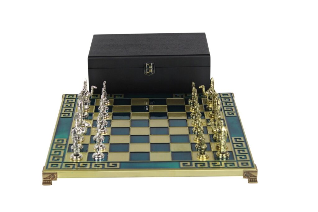 Enthülle eine Welt voller historischer Mystik und strategischer Brillanz mit unserem außergewöhnlichen 13-Zoll-Griechischen Blauen Metall-Schachset. Dieses atemberaubende Ensemble vereint den klassischen Reiz der griechischen Ästhetik mit dem rätselhaften Charme der antiken ägyptischen Symbolik und ergibt ein wirklich fesselndes Spielsatz, der sowohl Schachliebhaber als auch Sammler anspricht.