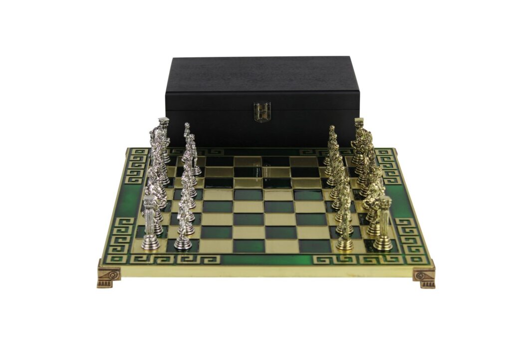 Beschreibung Tauchen Sie ein in die Welt strategischer Brillanz, die sich mit der Pracht des Römischen Reiches durch unser exquisites 13-Zoll-Römische Reich Grünes Metall-Schachset verwebt. Dieses faszinierende Ensemble vereint nahtlos den Reiz römischer Ästhetik mit den komplexen Taktiken des Schachs und ergibt ein einzigartiges Meisterwerk, das sowohl Enthusiasten als auch Sammler anspricht.