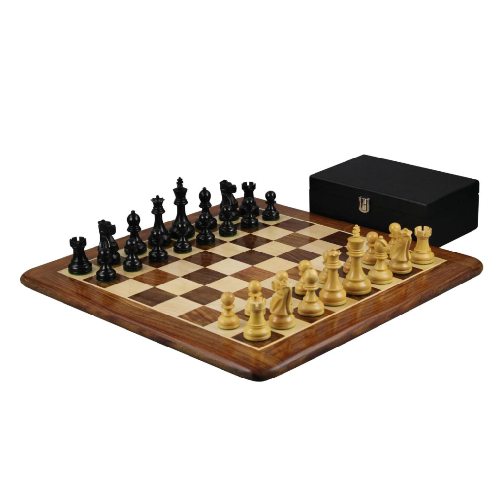 Sheesham Schachset mit Sheesham Flachschachbrett 20 Zoll und Ebonisierten Reykjavik Schachfiguren 3,75 Zoll