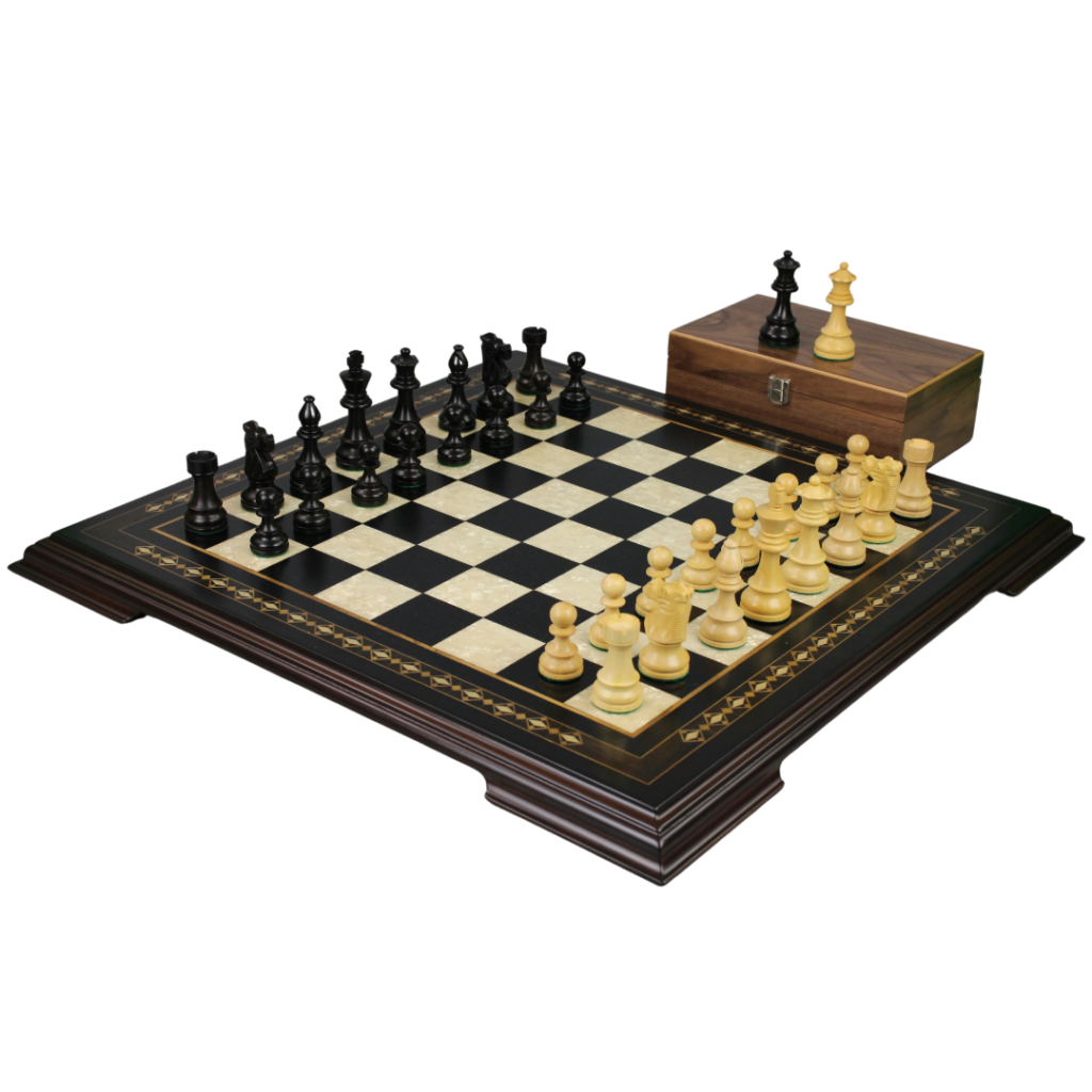 Ebenholz-Schachset 20 Zoll mit Helena-Schachbrett und gewichteten ebonisierten französischen Ritter Staunton Schachfiguren 3,75 Zoll