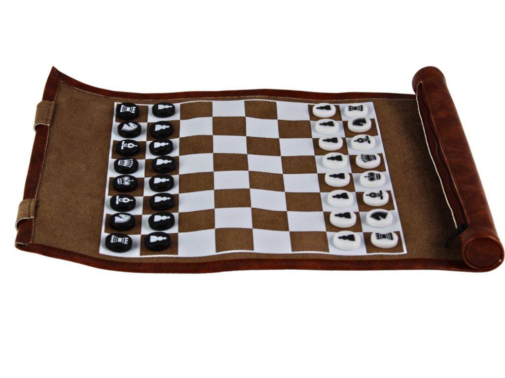 Braunes Reise-Schachset zum Aufrollen – 13 Zoll