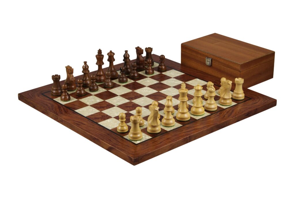 Rosenholz-Schachset 20 Zoll mit Helena-Perlmutt-Flachschachbrett und gewichteten Sheesham Atlantic Klassisch Staunton Schachfiguren 3,75 Zoll