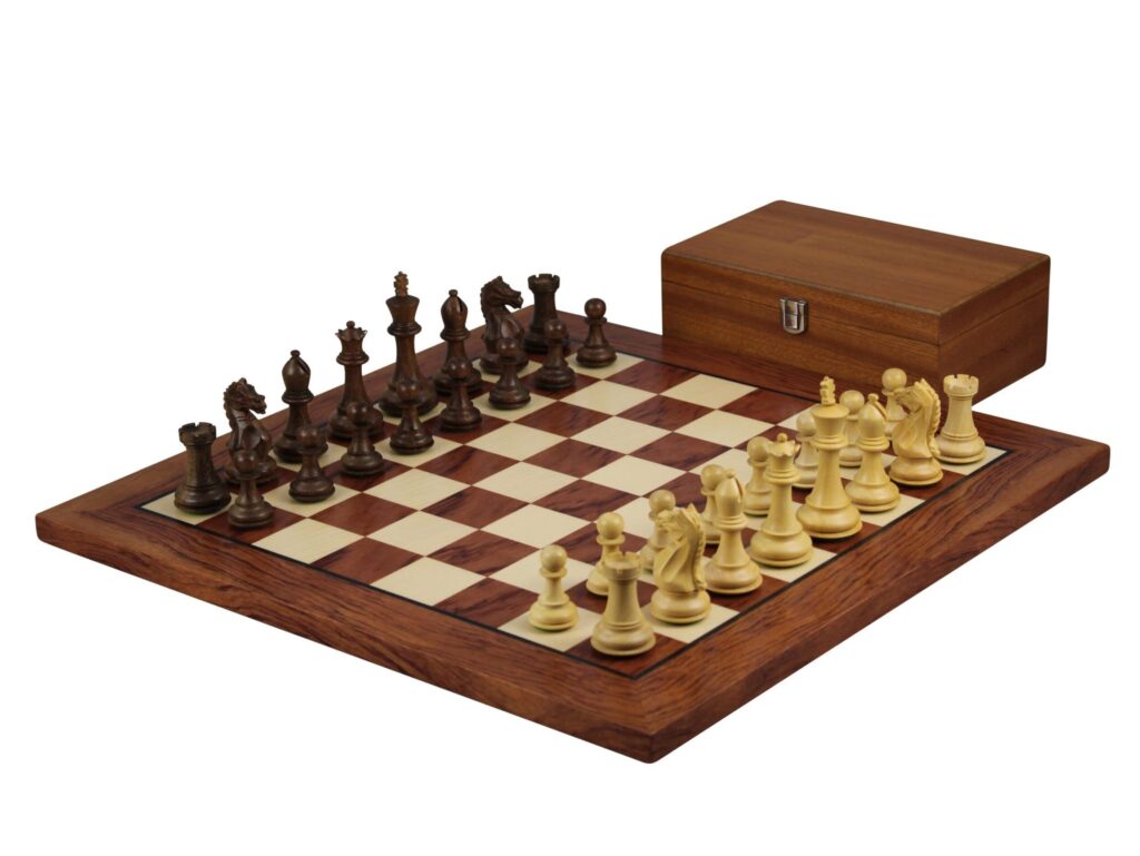 Rosenholz Schachspiel 20 Zoll mit Helena-Flachschachbrett und gewichteten Sheesham-Wildritter-Staunton-Schachfiguren 3,75 Zoll