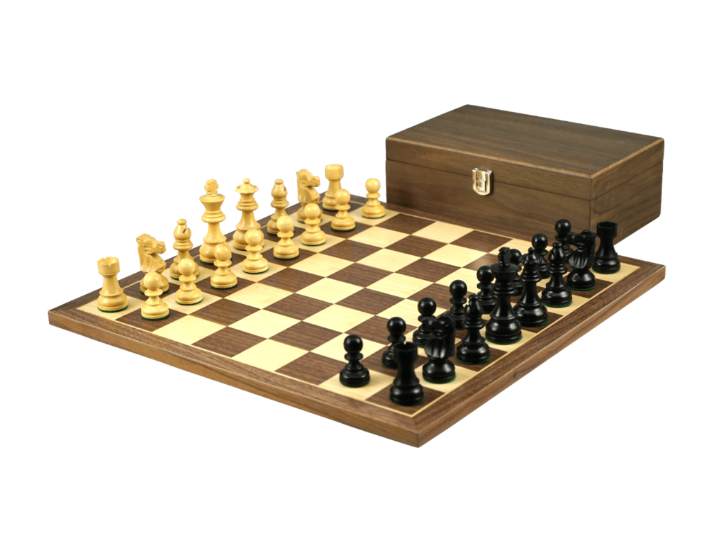 Walnuss Schachspiel 16 Zoll mit gewichteten ebonisierten französischen Ritter Schachfiguren 3 Zoll