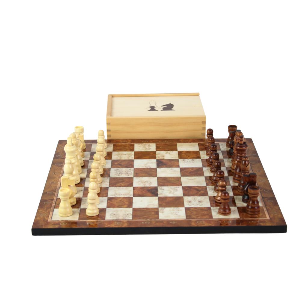 Eine der Besonderheiten dieses Schachsets ist die Schiebe-Aufbewahrungsbox, die mit Bequemlichkeit im Sinn entworfen wurde. Die Box verfügt über einen reibungslosen Schiebemechanismus, der einen einfachen Zugriff auf die Schachfiguren ermöglicht, während sie sicher aufbewahrt werden, wenn sie nicht in Gebrauch sind. Die Aufbewahrungsbox ist wunderschön gestaltet, um zu den Schachfiguren und dem Schachbrett zu passen und trägt zur Gesamteleganz des Sets bei.