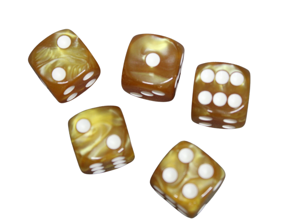 D6 Würfel mit Sonnenuntergang-Gold Rundmarmor-Effekt, 16 mm, mit Weißen Punkten