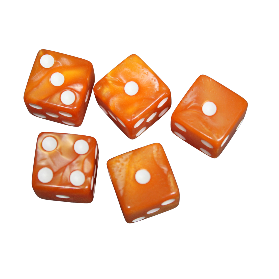 Diese Spritzigen Orange 16 mm D6 Würfel verleihen jeder Spielnacht einen Hauch von Eleganz. Hergestellt aus hochwertigem Harz, verfügen sie über ein warmes, orangefarbenes Finish, das das Licht wunderschön einfängt. Die weißen Punkte sind klar eingraviert, um eine einfache Ablesbarkeit während des Spiels zu gewährleisten. Jeder Würfel ist präzise ausbalanciert, um bei jedem Wurf eine gleichmäßige und faire Leistung zu gewährleisten. Ideal für Brettspiele, Tisch-RPGs oder Sammler, bieten sie sowohl Stil als auch Zuverlässigkeit. Eine perfekte Mischung aus Funktion und Charme für Ihre Würfelsammlung.