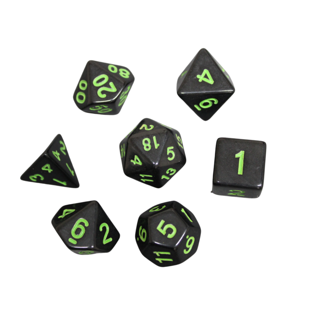 Mitternachtsschwarz & Neongrün Marmoriertes DND-Würfelset, 7-teiliges Würfelset für Rollenspiele