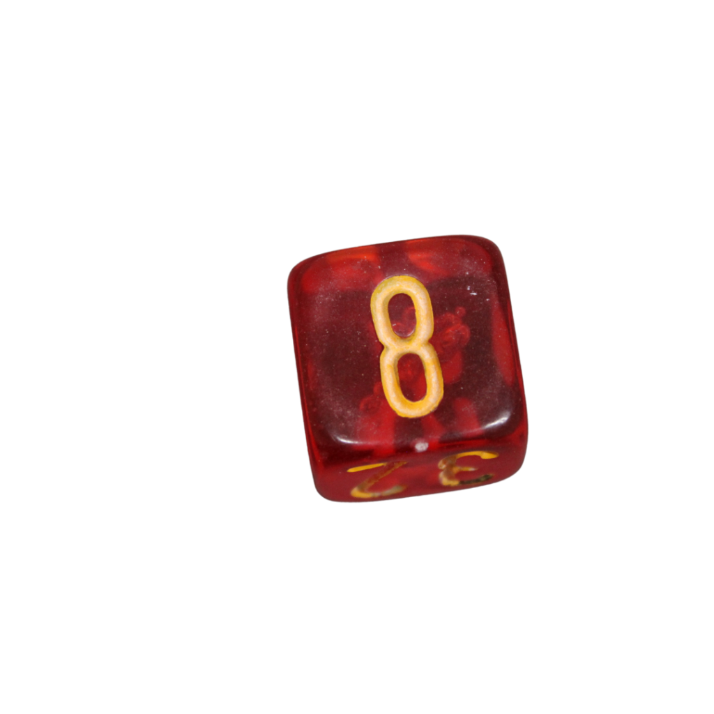 Mit einem Maß von 22 mm liegt der Würfel angenehm in der Hand und bietet gut lesbare Zahlen, was ihn ideal für das Verfolgen der Einsätze während spannender Partien macht. Die kräftig karminrote Oberfläche mit kontrastreichen Markierungen ermöglicht eine schnelle und einfache Erkennung auf einen Blick.
