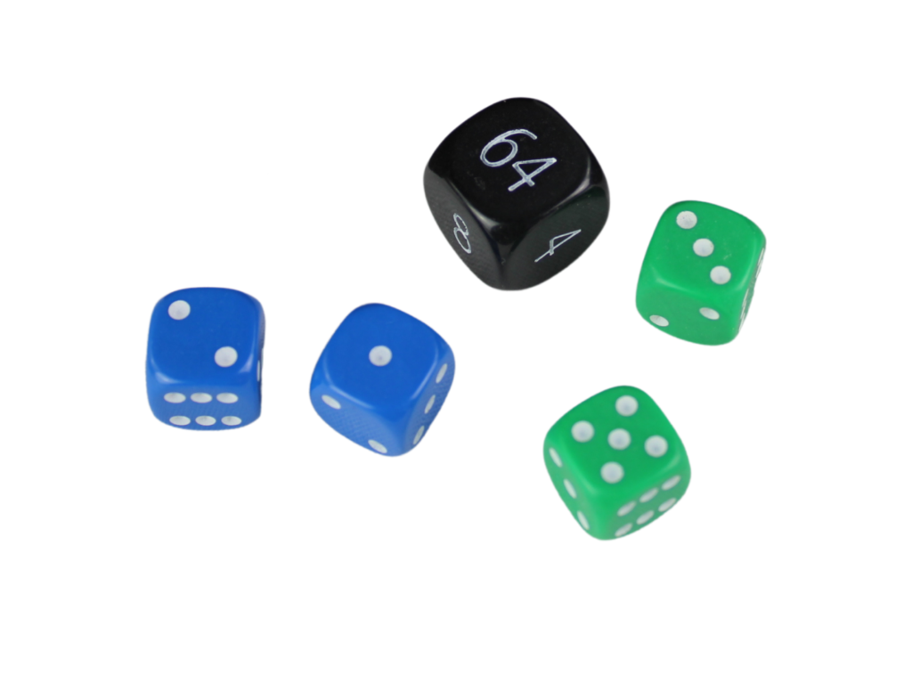 Ersatz-Würfelset für Backgammon – Schwarzer Verdopplungswürfel – Blaue & Grüne Würfel