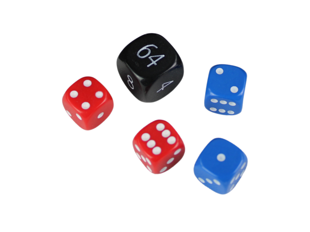 Ersatz-Würfelset für Backgammon – Schwarzer Verdopplungswürfel – Rote & Blaue Würfel